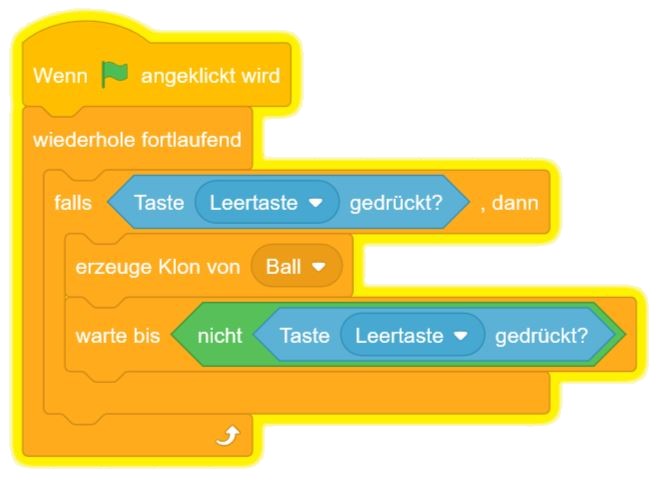 Der Ball soll mit der Leertaste abgefeuert werden können.