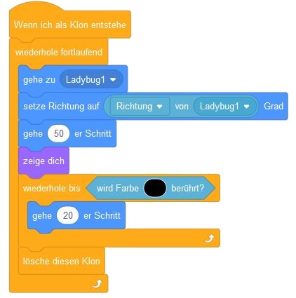 3. Die Pfeile sollen beim Käfer erscheinen, in dieselbe Richtung zeigen bzw. gehen und bei einer Berührung der schwarzen Mauern verschwinden.